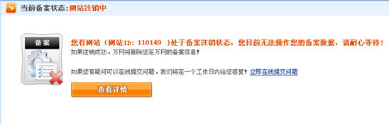 通過(guò)萬(wàn)網(wǎng)工作人員正在注銷有備案號(hào)的