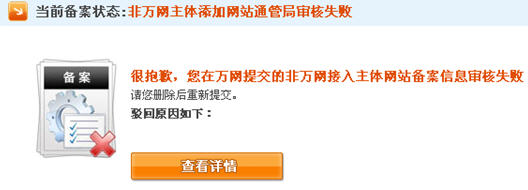 18、非萬(wàn)網(wǎng)主體添加網(wǎng)站通管局審核失敗